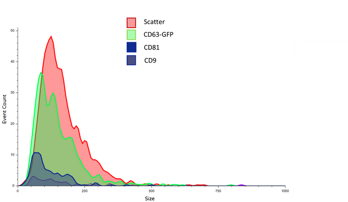 CD9, CD63 and CD81 are the most commonly used EV markers and members of the tetraspanin family. While they are widely expressed among many EV types, their expression levels varies depending on the origin of the vesicles.